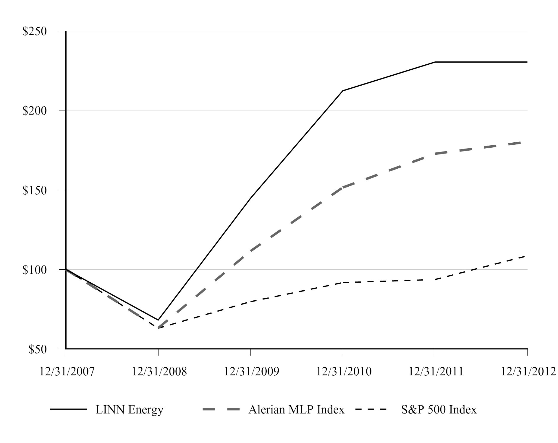Earnings for the year ended December 31, 2012, were insufficient to cover fixed charges by approximately $386 million, primarily due to noncash impairment charges of approximately $422 million associated with proved oil and natural gas properties related to a decline in commodity prices and noncash charges of approximately $278 million associated with changes in mark-to-market values related to oil and natural gas derivatives. Earnings for the years ended December 31, 2010, and December 31, 2009, were insufficient to cover fixed charges by approximately $110 million and $300 million, respectively, primarily due to noncash charges of approximately $232 million and $591 million, respectively, associated with changes in mark-to-market values related to oil and natural gas derivatives.